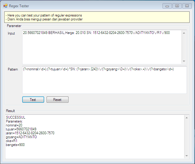 gmna caranya setting regex agar  di SN/Reff munculnya : Harga Rp. 33.000, Umur Kartu 367 Hari